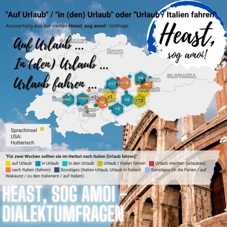 Nichts davon – so scheinen die Antwort im Dialekt zu sein. Denn die meisten Teilnehmenden sparen sich das Wort „Urlaub“ bei der vierten Dialektumfrage „Der Unfall“ ganz einfach. Sie sind Italien gefahren, nach Italien gefahren oderzu den Italienern gefahren.