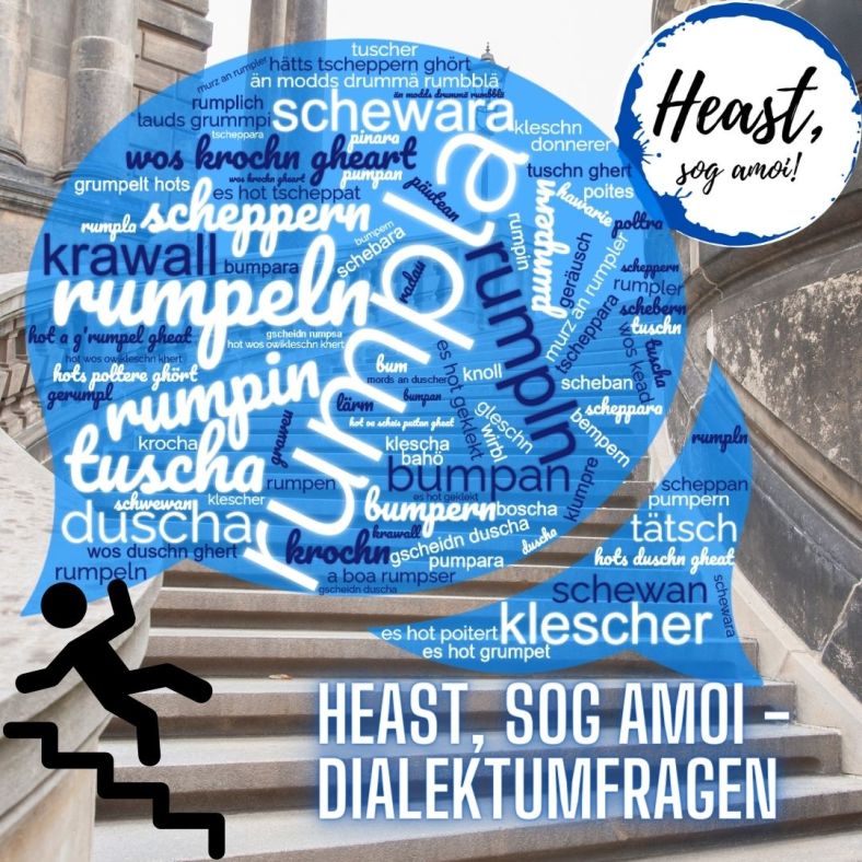 Zurück zur vierten Dialekt-Umfrage „Der Unfall“, denn es gibt noch ein paar Dinge anzusehen: Nämlich [Er fiel Stufen herunter]. Wie sagt man also im Dialekt, wenn’s unfreiwillig abwärts geht?