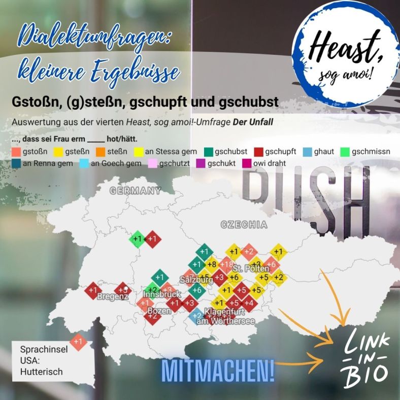Also: Neugierig bleiben, in den Umfragen und unter dem Hashtag #sogamoi beim ORF Wörtersammeln mitmachen und ein Stückchen mithelfen, unsere Dialekte zu verewigen!